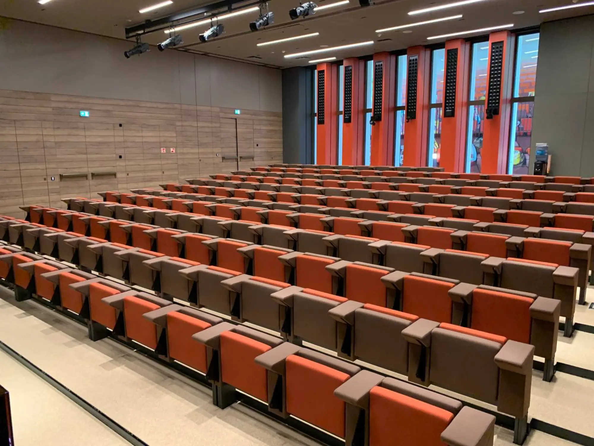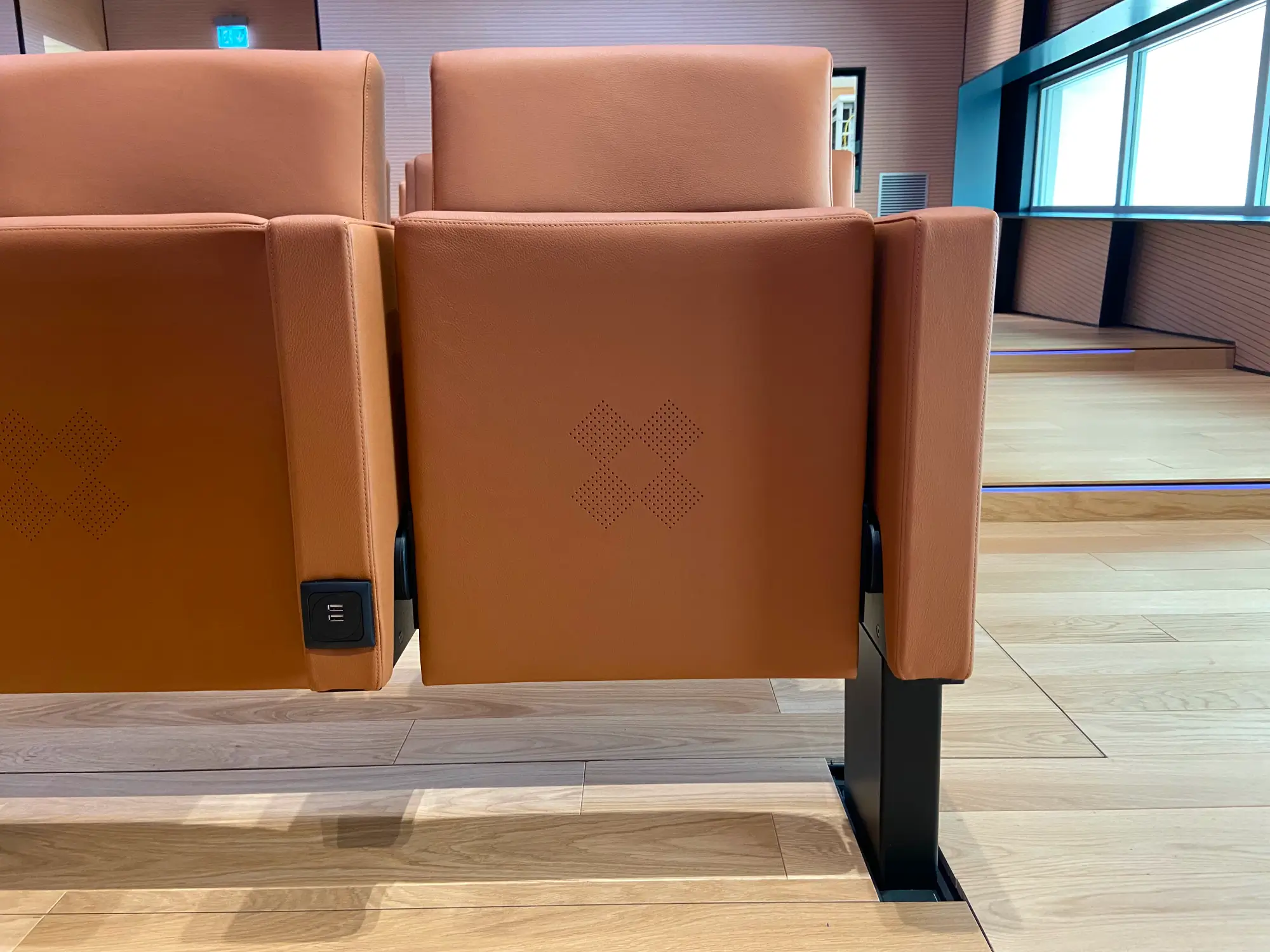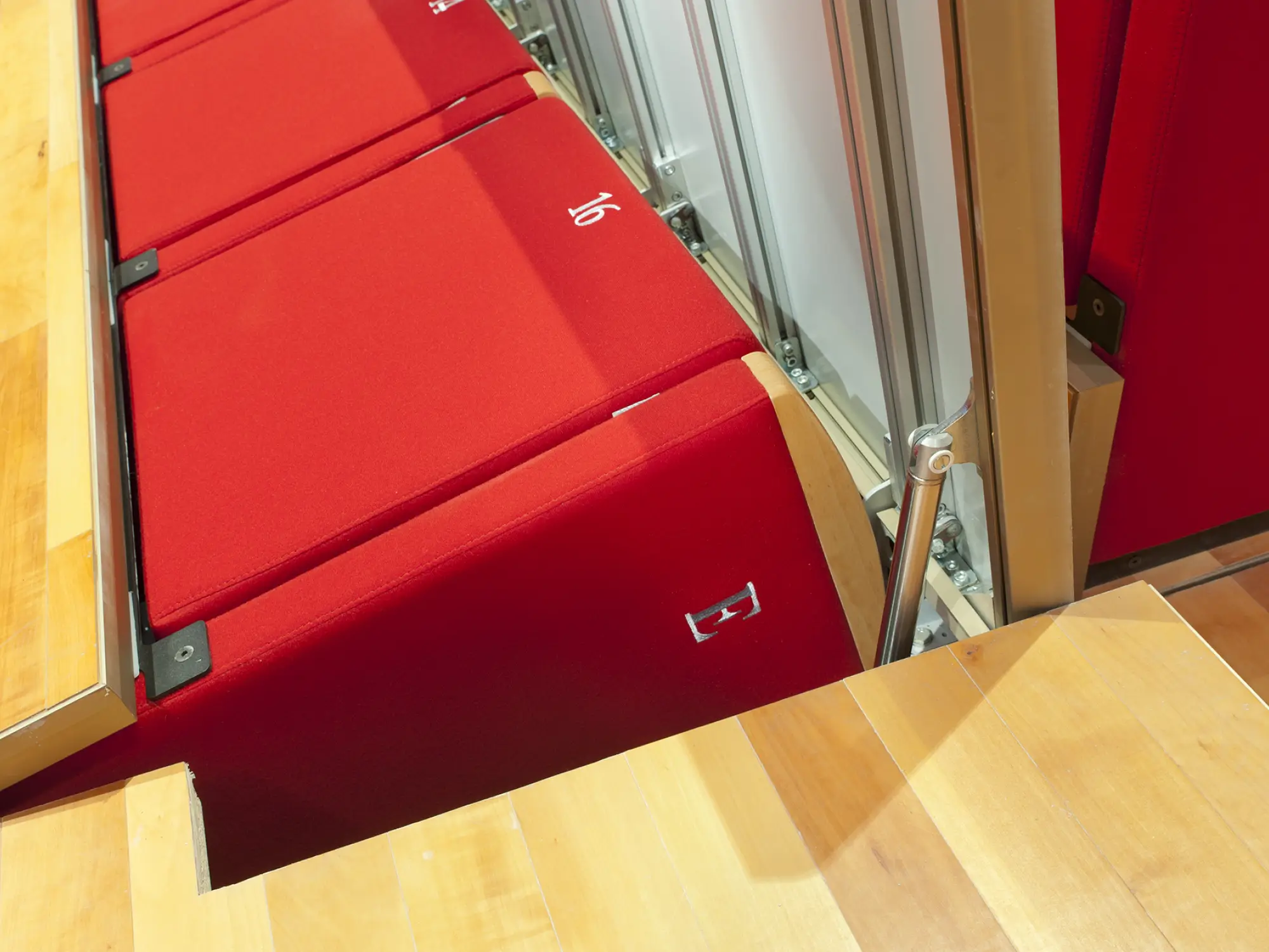 Capacity: modules from 2 to 4 seats (manual version); up to 16 seats per module in the motorised version, configurable on any surface – flat floor, stage or tiered seating