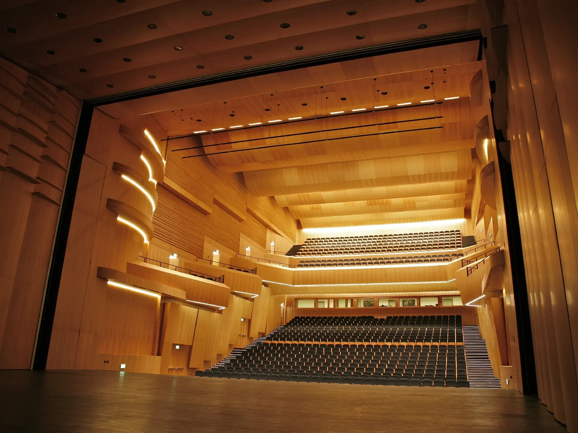 Stage machinery, acoustics and custom-made main curtain