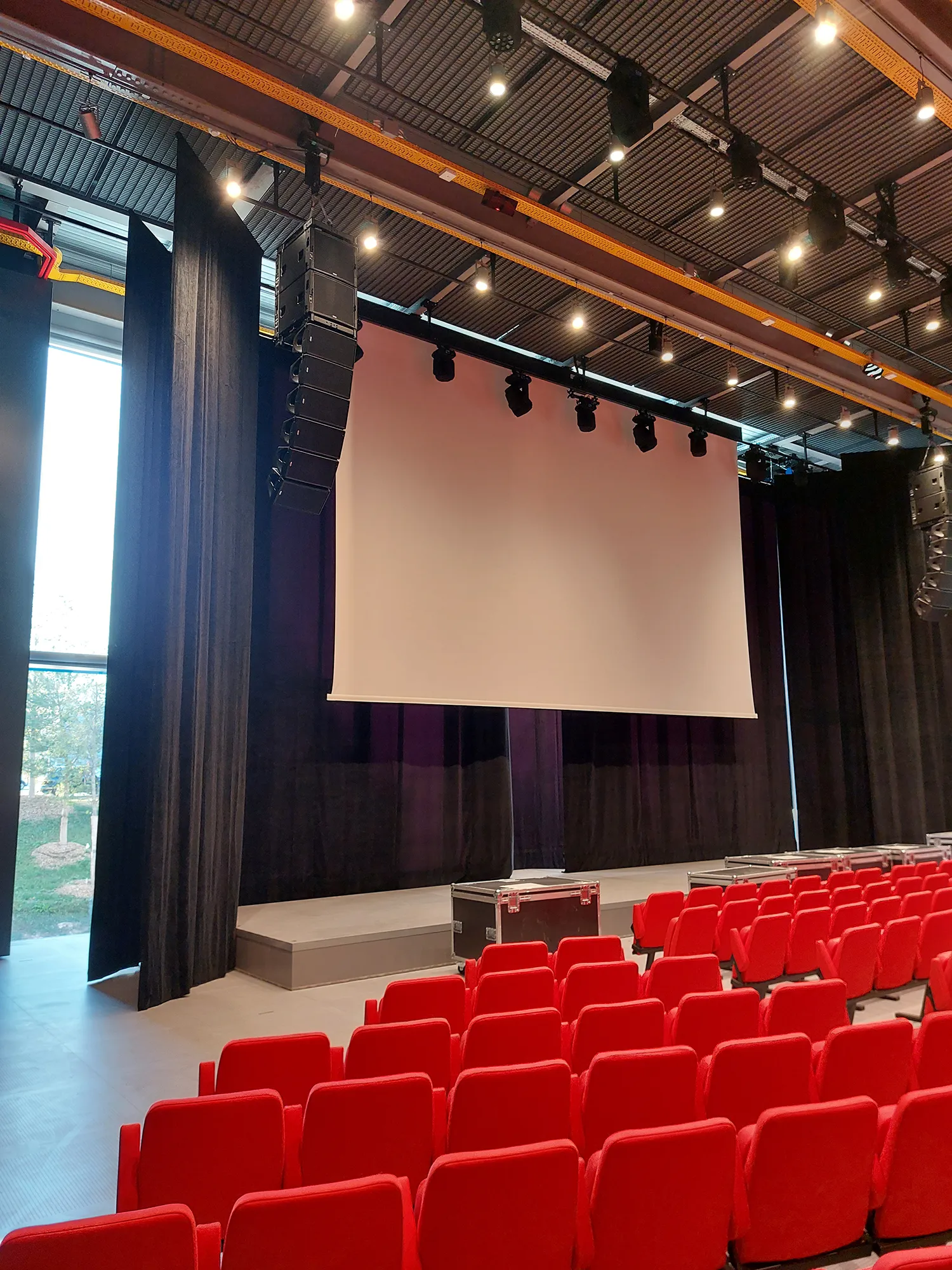 L’auditorium è stato concepito come ambiente altamente flessibile e adattabile, dotato di: