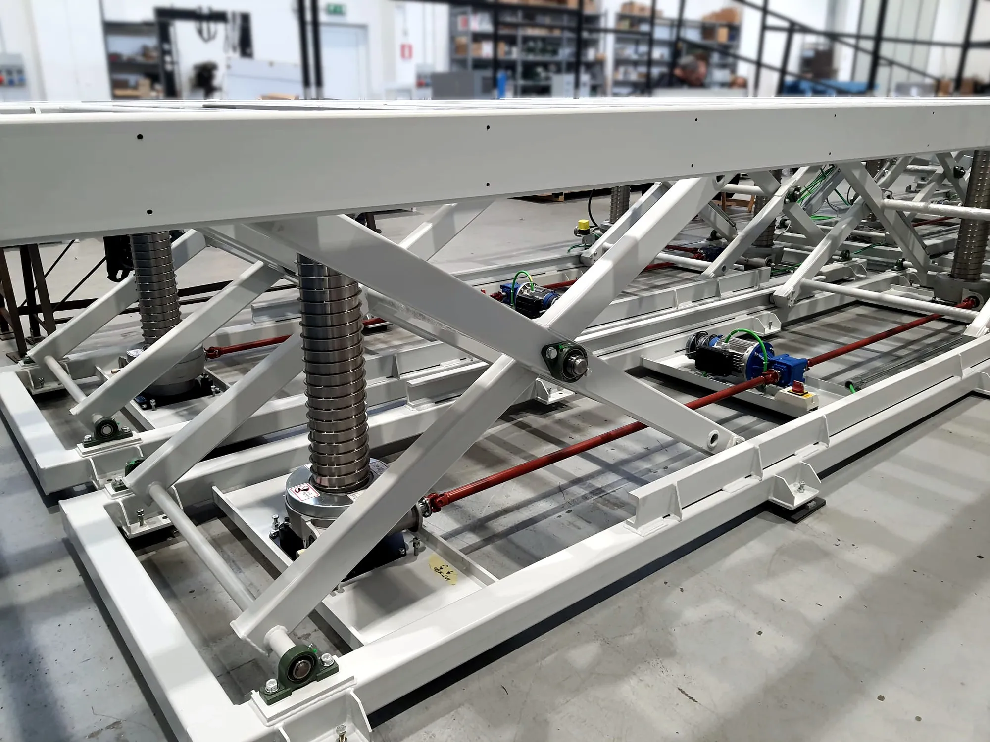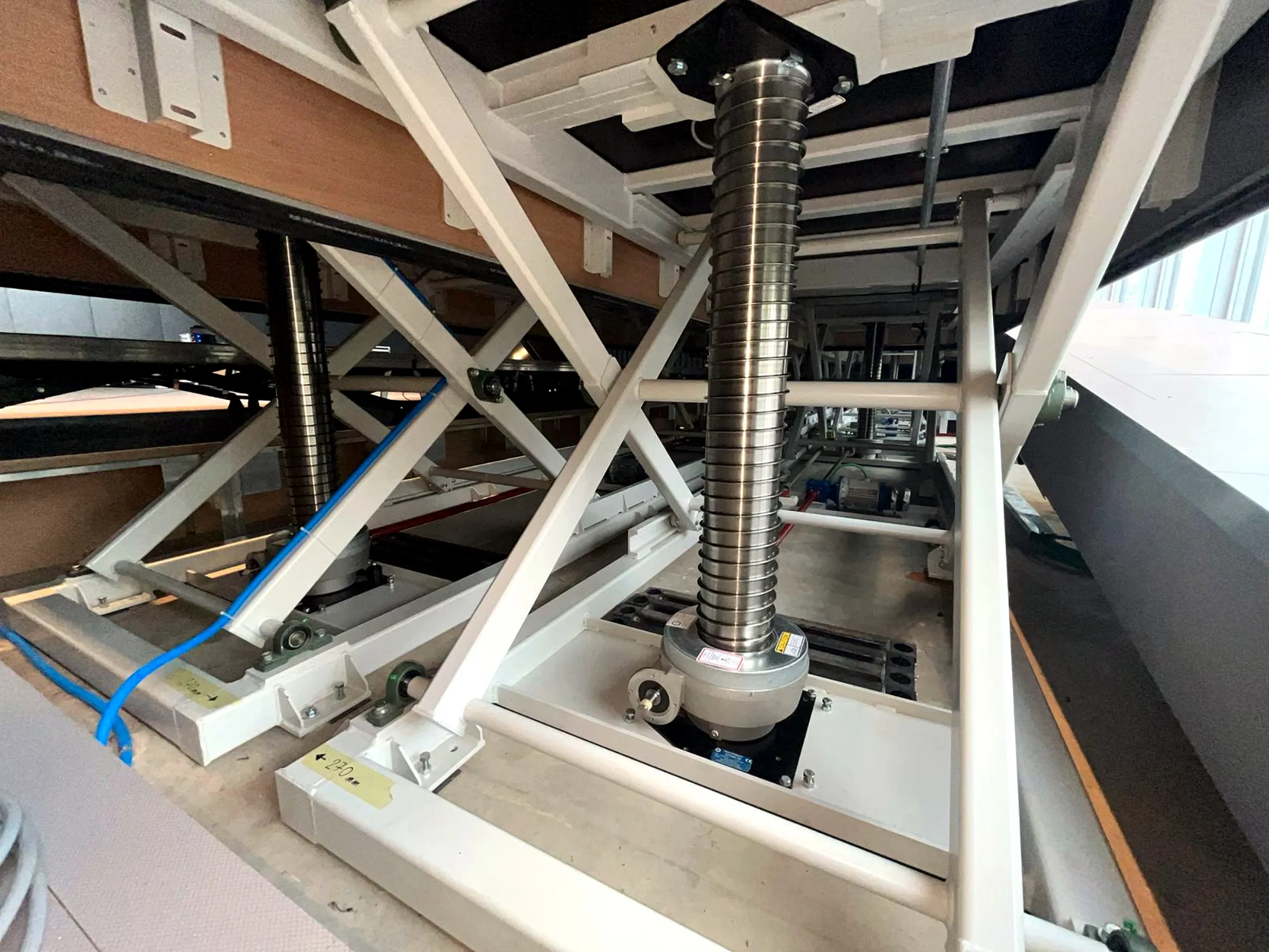 Meccanica inferiore: palco motorizzato tramite il sistema Liftbox con pedana per accesso a persone diversamente abili.