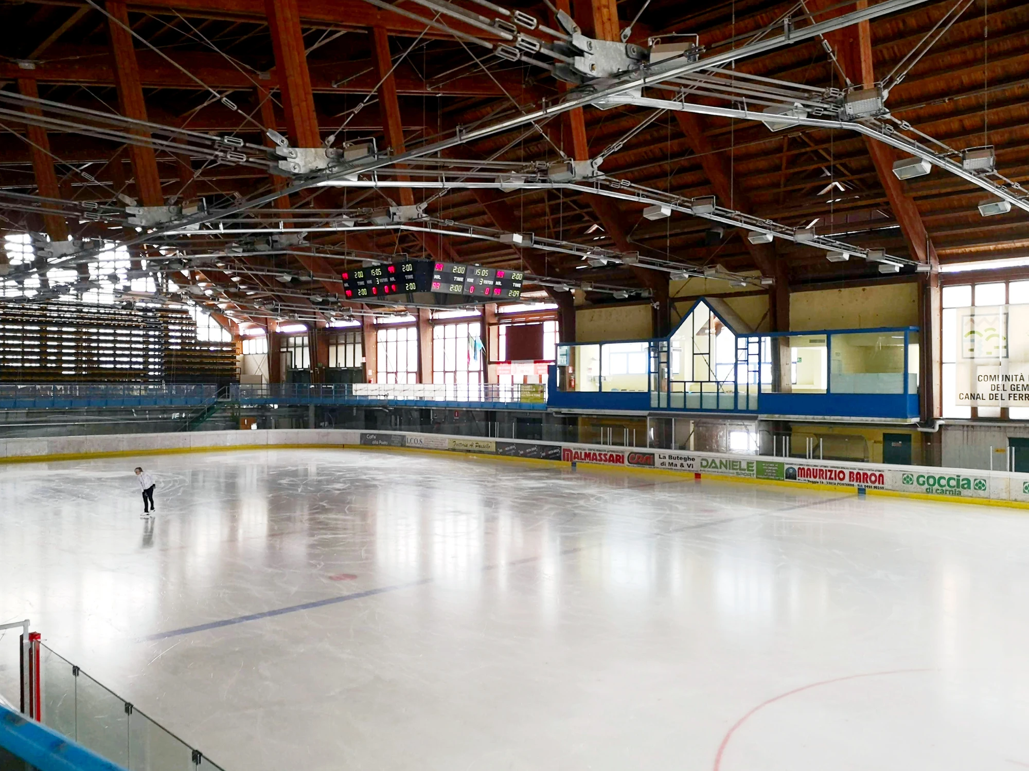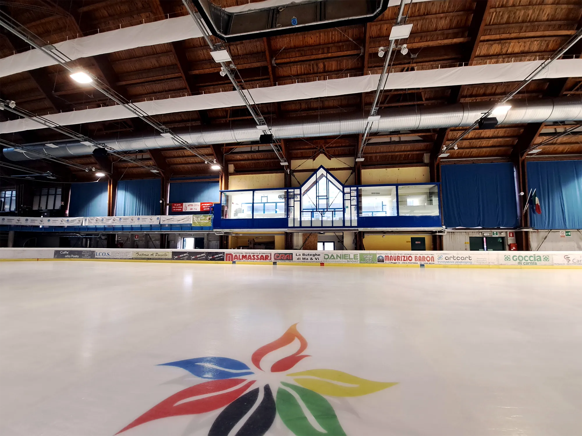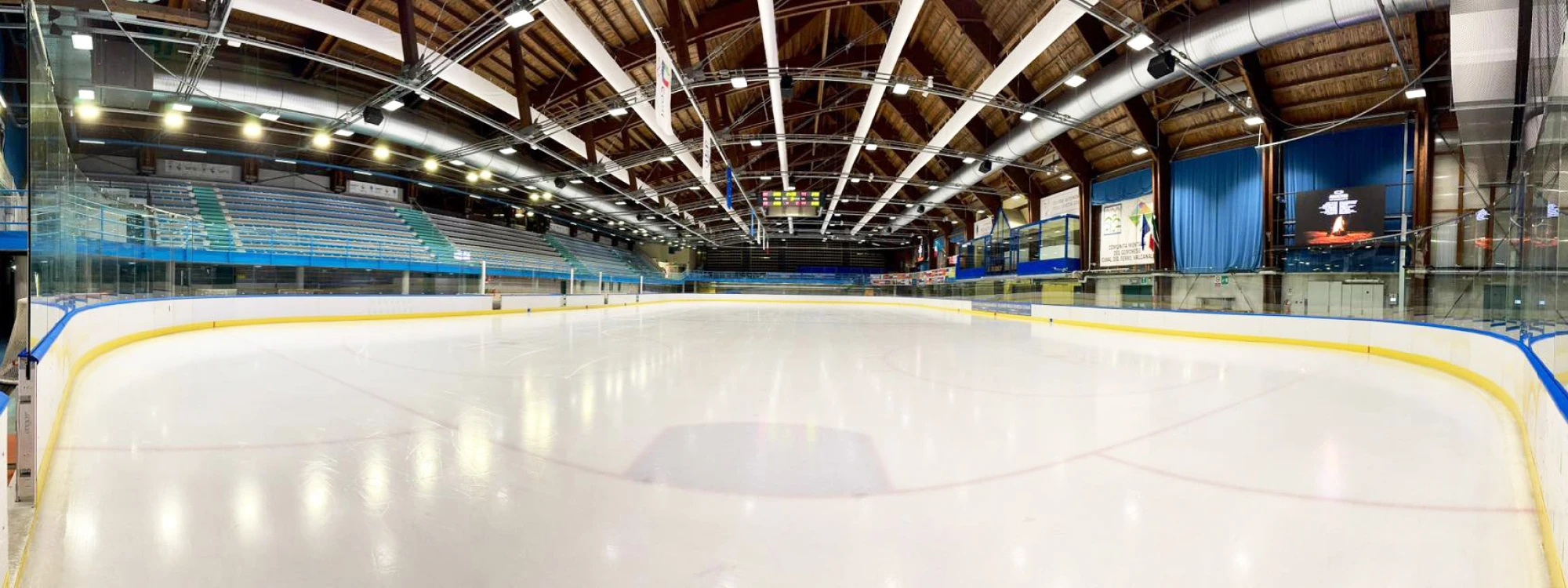 Decima ha curato lo studio, la progettazione e la realizzazione dei tendaggi tecnici per il Palaghiaccio, con l’obiettivo di migliorare le prestazioni acustiche e luminose dell’ambiente, garantendo al contempo un impatto estetico coerente con il contesto architettonico.
